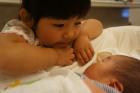 画像は生後1カ月を迎えた息子と3歳の長女。